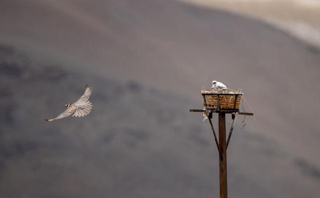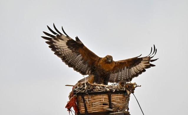 格桑伦珠带队巡护的时候,经常看到鹰架上热闹的景象。大鵟妈妈叼着猎物飞回来,雏鸟张大嘴等着喂食。游隼爸爸站在巢边,眼神犀利,像在给全家站岗。这些画面让他觉得,辛苦都值了。他笑着说:“看着鸟儿在天上飞,草原绿得像画,我心里就踏实。”
